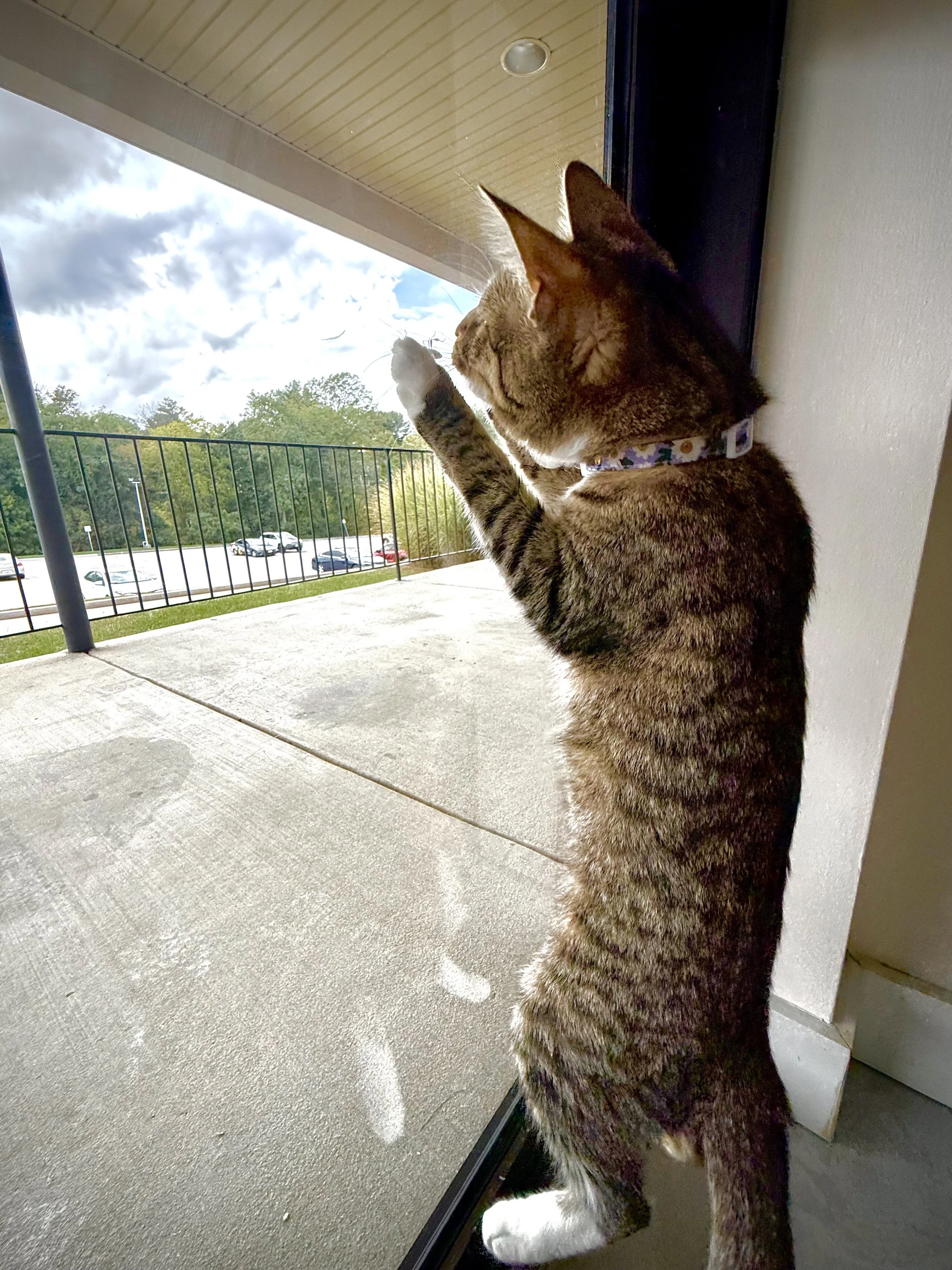 The Cat Monitor keeps an eye on the Private Cat Area & ensures that there is always a clean environment, fresh water, & accessible food for our cats.