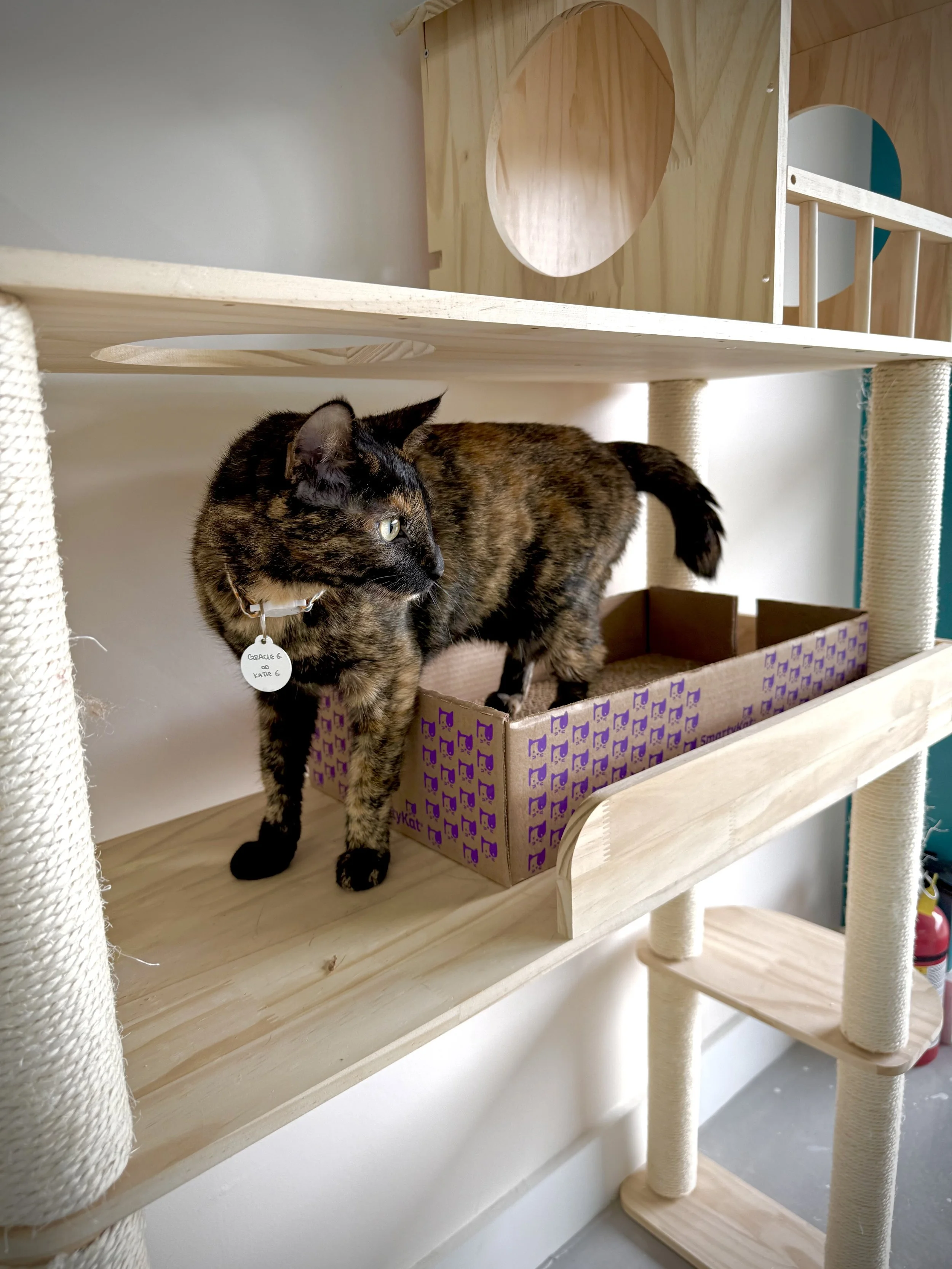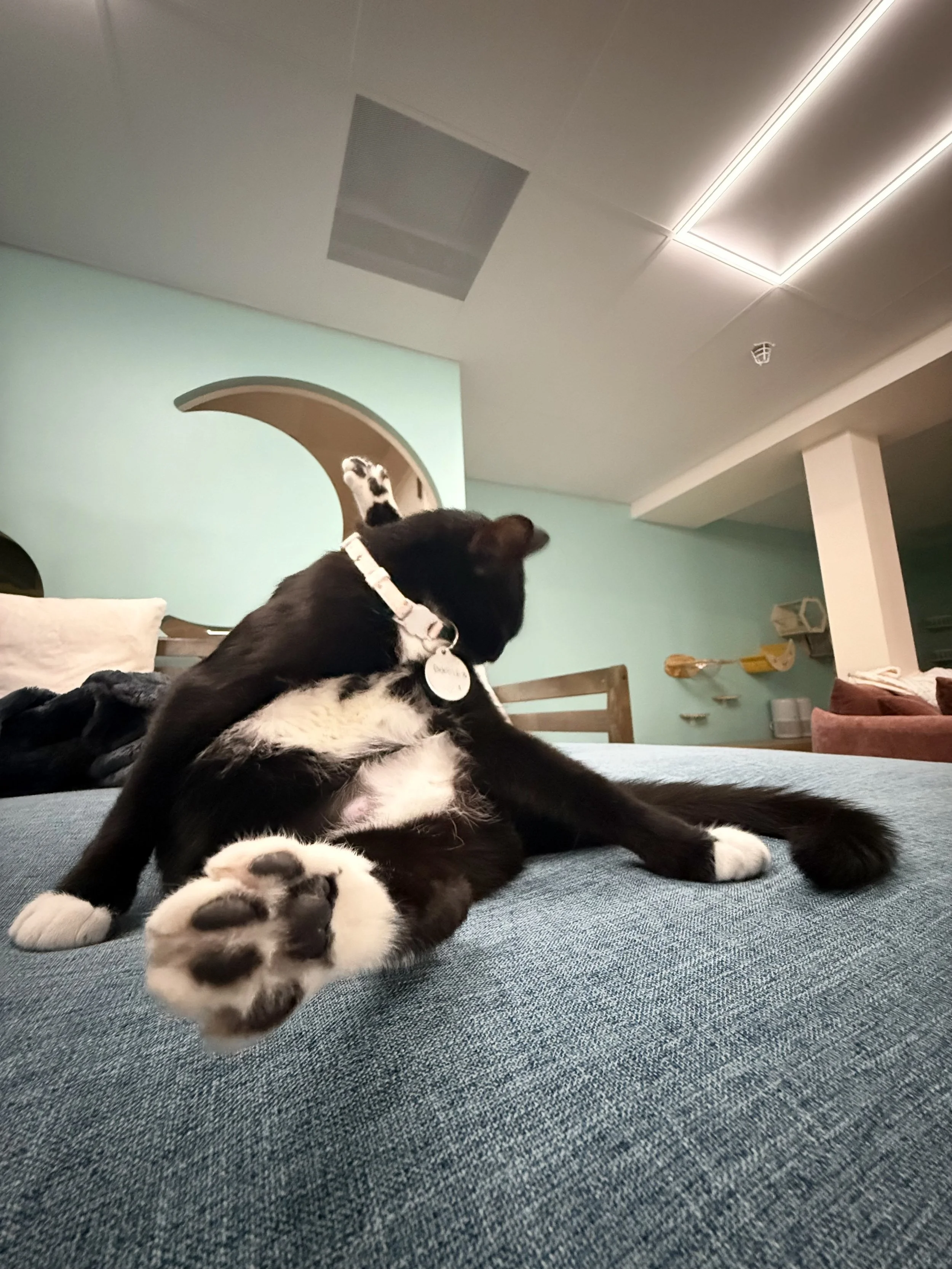 Our Cat Lounge is designed as a sanctuary so we can give the cats who get the opportunity to stay at Luna Cat Collective the best life possible. This means providing them with a private space, quality food, plenty of water & a warm, loving, clean environment. Luna Cat Collective covers any emergency or routine vet care with the guidance of our rescue partner Small Miracles Cat & Dog Rescue.
