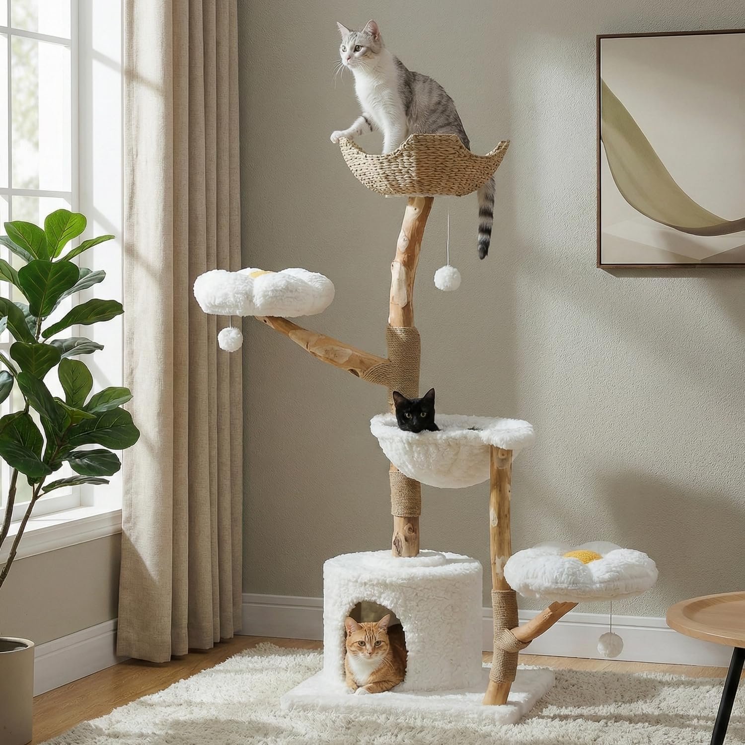 Muttros 59” Modern Cat Tree Tower & Muttros 36” Wood Flower Cat Tree